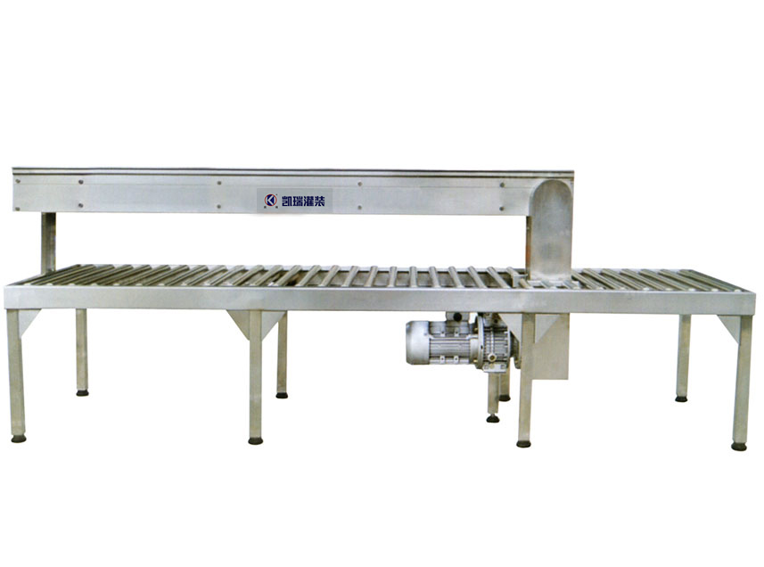 2.人工將瓶子裝入箱內(nèi),借滾子的滾動(dòng)將箱子直接送入封箱機(jī)封箱,代替人工搬箱的勞動(dòng)力。