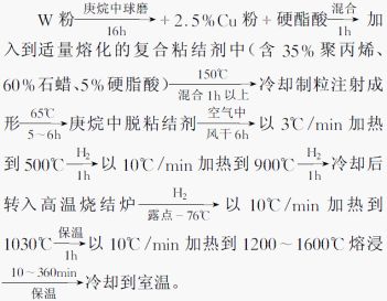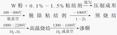 高溫?zé)Y(jié)鎢骨架法的典型工藝如下: